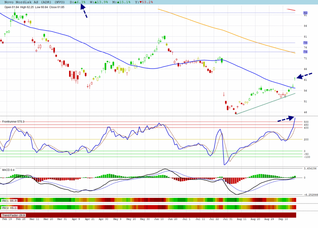 NVO took the honors with its 6.3% gap climbing back from its large correction.