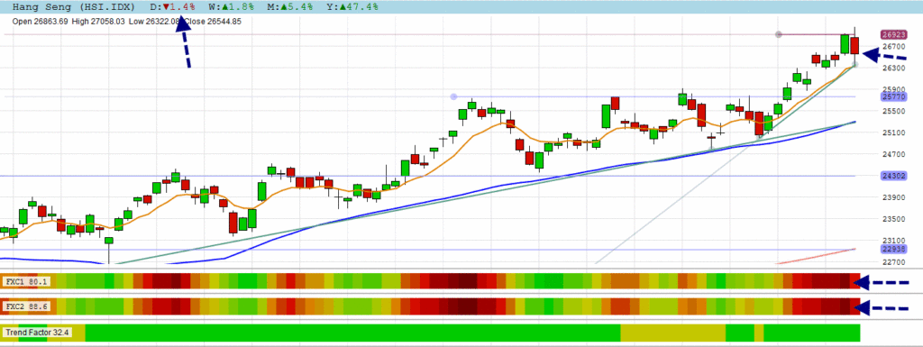 Profit taking took place for the HANG SENG in overbought territory.