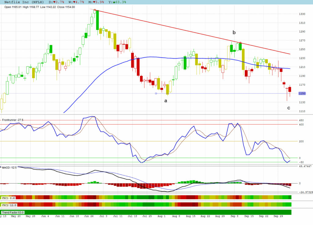 NFLX is still busy with its abc correction. We will have to see if its $1150 support will hold with the boycott call from Musk.