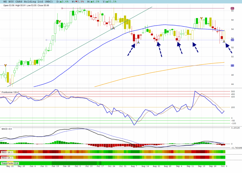 WBC has now bounced for the fifth time on its R54 support with a P1 Power Signal.