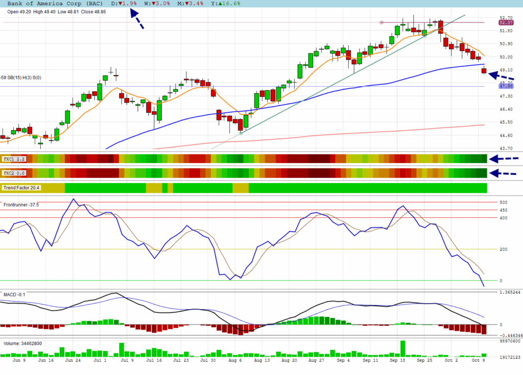 BAC closed below its 50 DMA support ahead of big bank earnings in oversold territory.