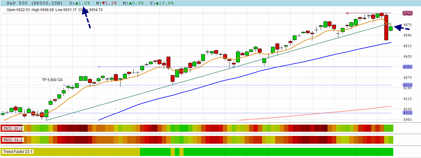 The bounce of the S&P 500 closed below its EMA8 line. Earnings will be the next key.