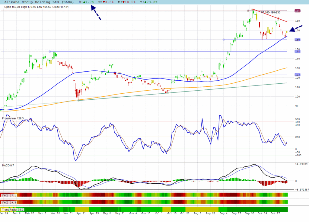BABA bounced against the negative trend with a 1.7% gain.