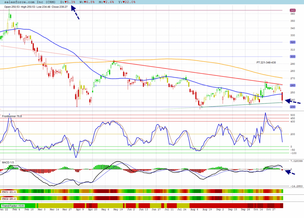CRM retreated 5.3% leaving estimate of $348 by analysts way up in the sky.