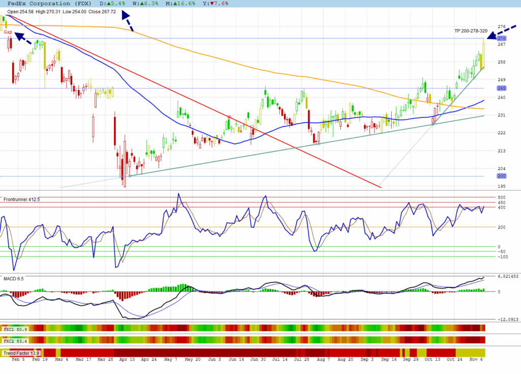 FDX made a strong move to reach an old resistance created by a previous gap.
