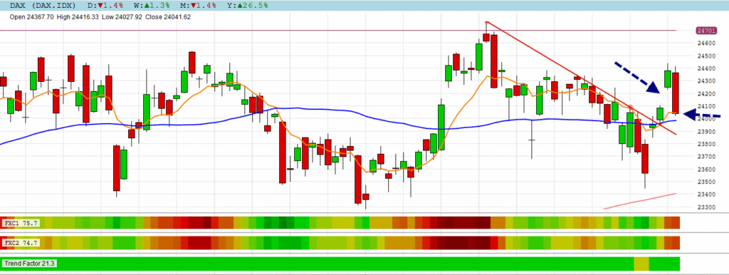 Similarly, the DAX closed its open window to close on its EMA8 line.