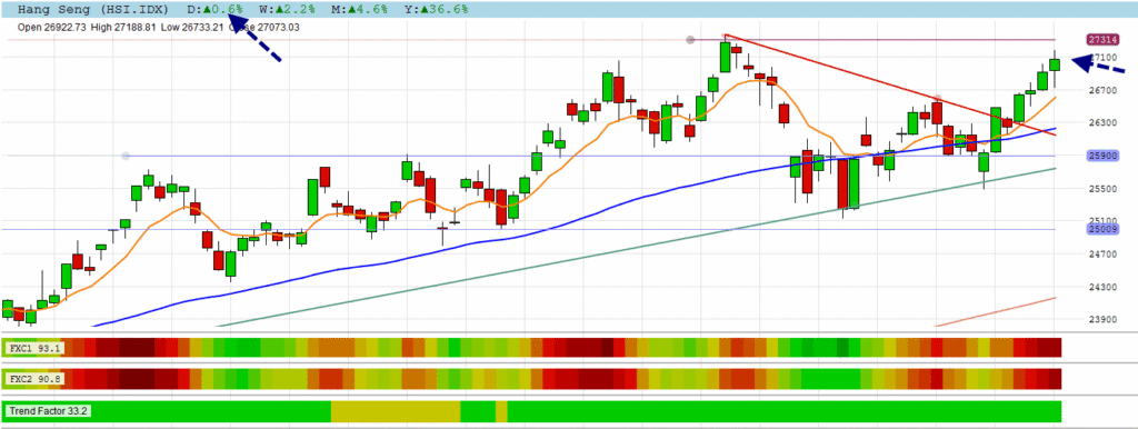 The HANG SENG continued its positive trend but also opened negative this morning.