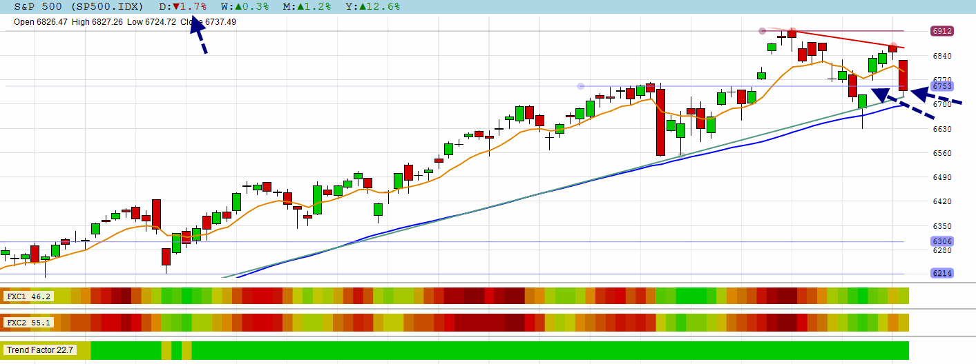 The S&P 500 closed the open window (gap) made 3 days earlier with its correction after the hammer candle.