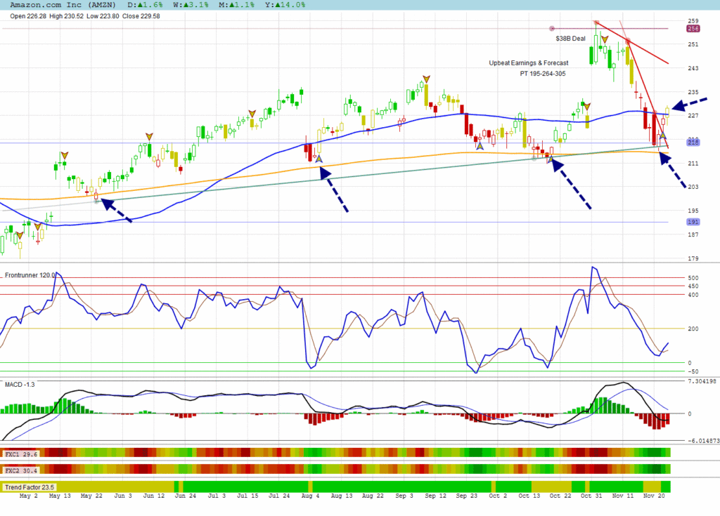 AMZN broke its 50 DMA resistance. Notice how its 200 DMA acted as support for turns in the past.