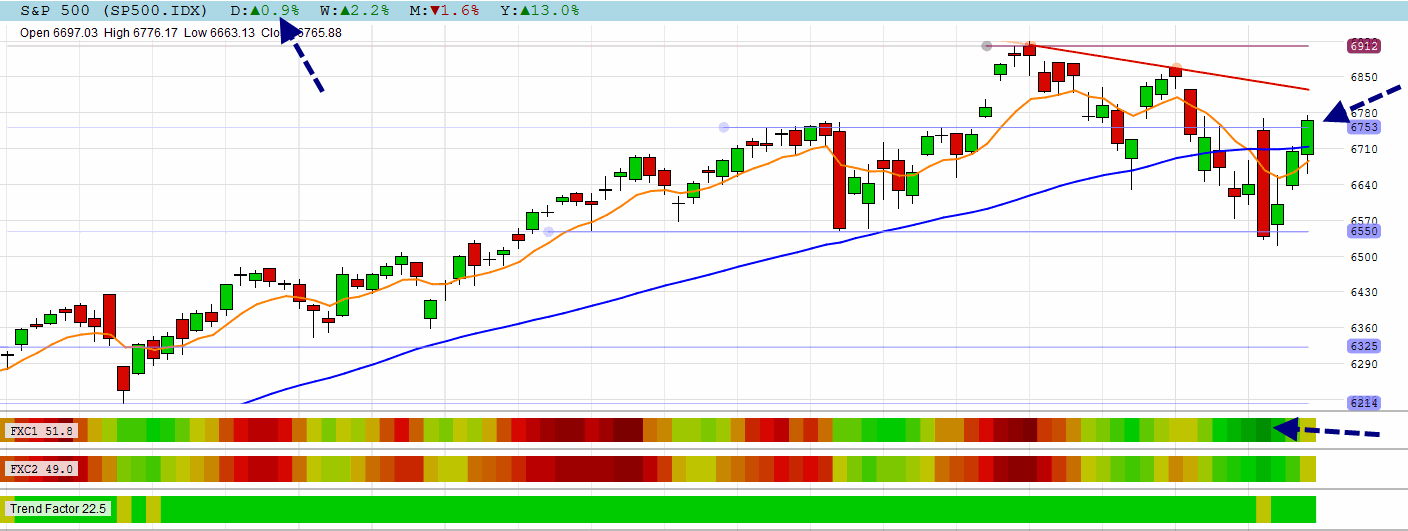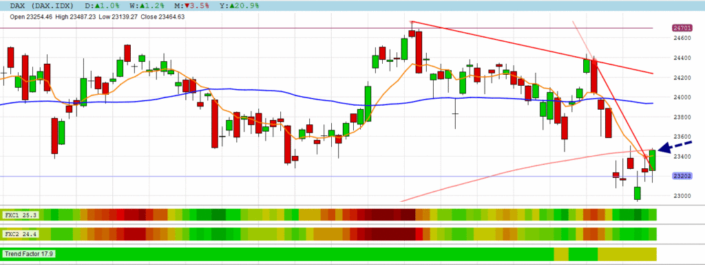 After all the uncertain candles the DAX found new direction to close on its 200 DMA resistance.