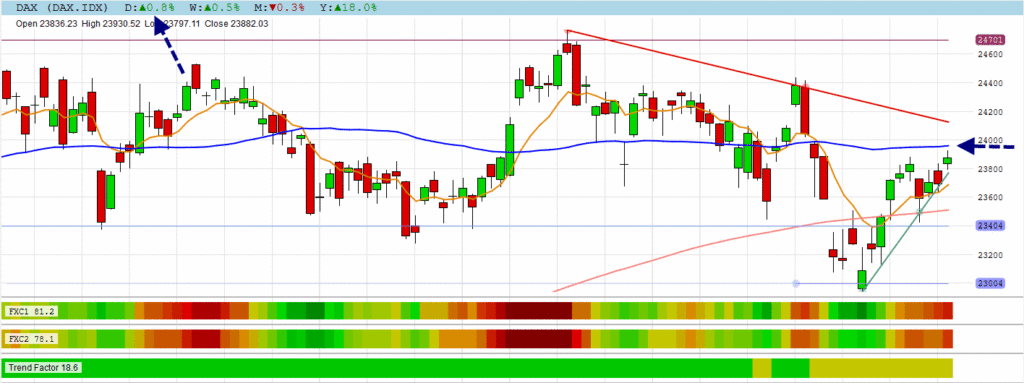 The DAX moved closer to its 50 DMA resistance with a high wave candle.