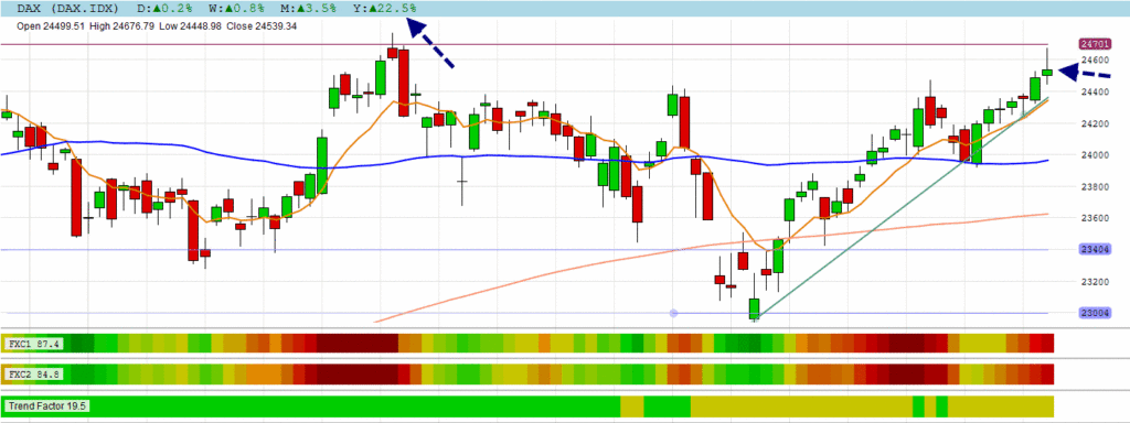 The DAX opened 2026 with an uncertain high wave candle just below top resistance. Notice that its gain for the years was 22.5%.