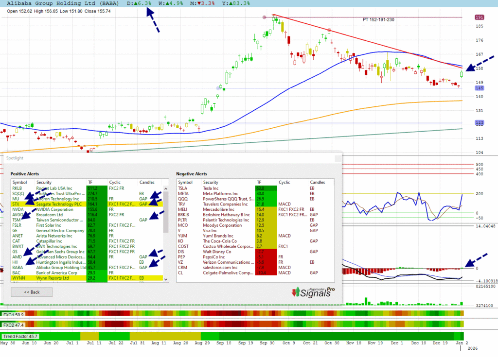 After the listing of Birem all the AI related shares made a breakaway gap. BABA‘s breakaway gap still closed below its 50 DMA. There is still 24% potential to its target price of $191. Analysts believe that the shares that lagged during 2025 have the most potential this year.
