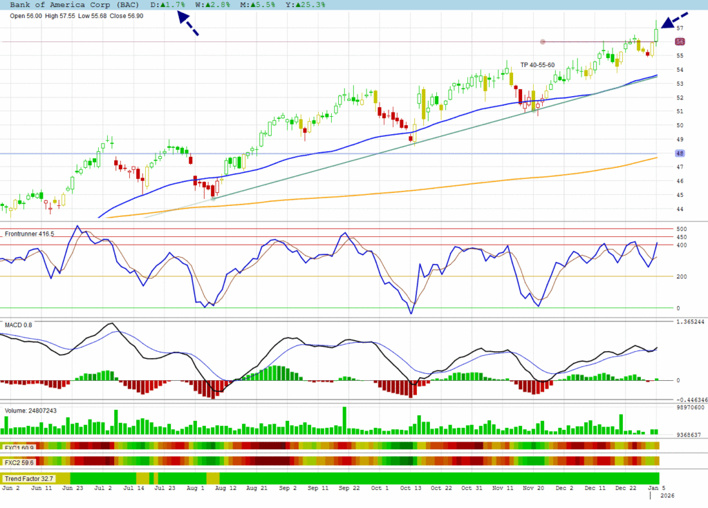 Banks are also in a rally with BAC breaking top resistance.