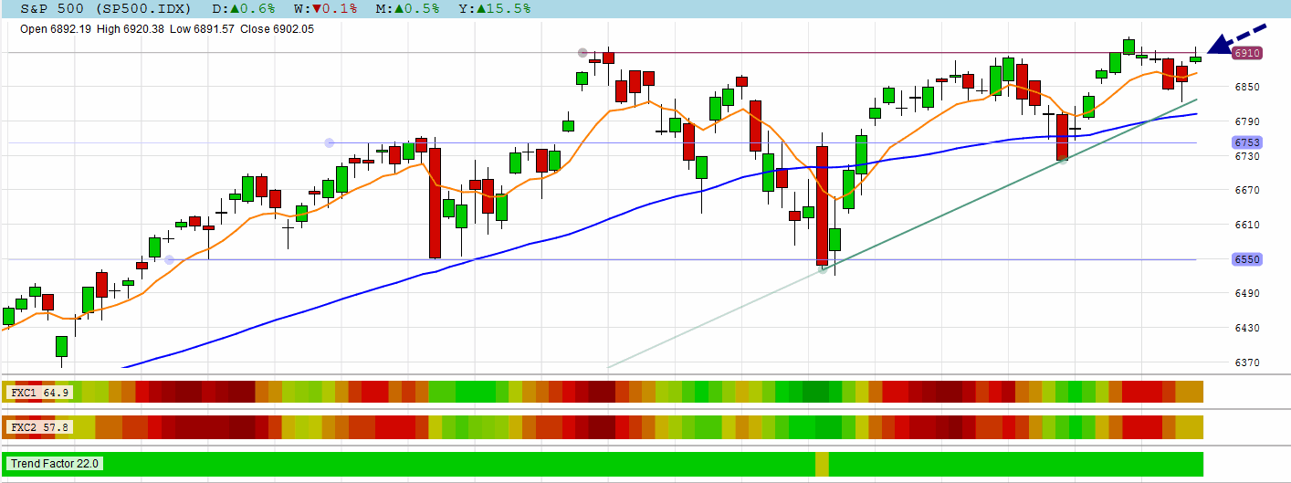 The S&P 500 closed at its top resistance hurdle. Futures are currently positive.