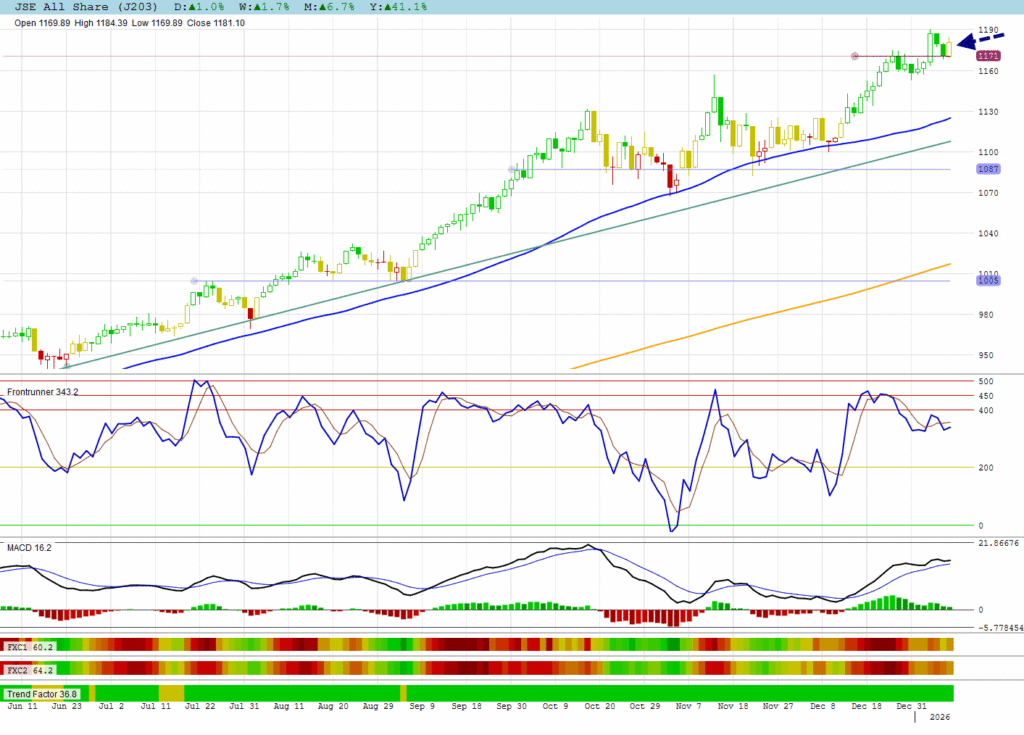 The JSE All Shares bounced on its break line to start forming a J-curve.