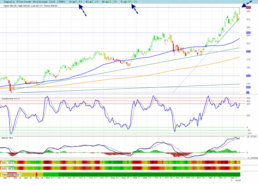 IMP still has a trending steep trend line with a yearly gain of 195%.