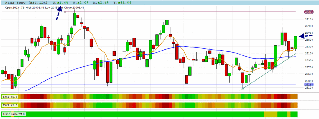 The HANG SENG made a large engulfing bull candle after the turninh hammer candle.