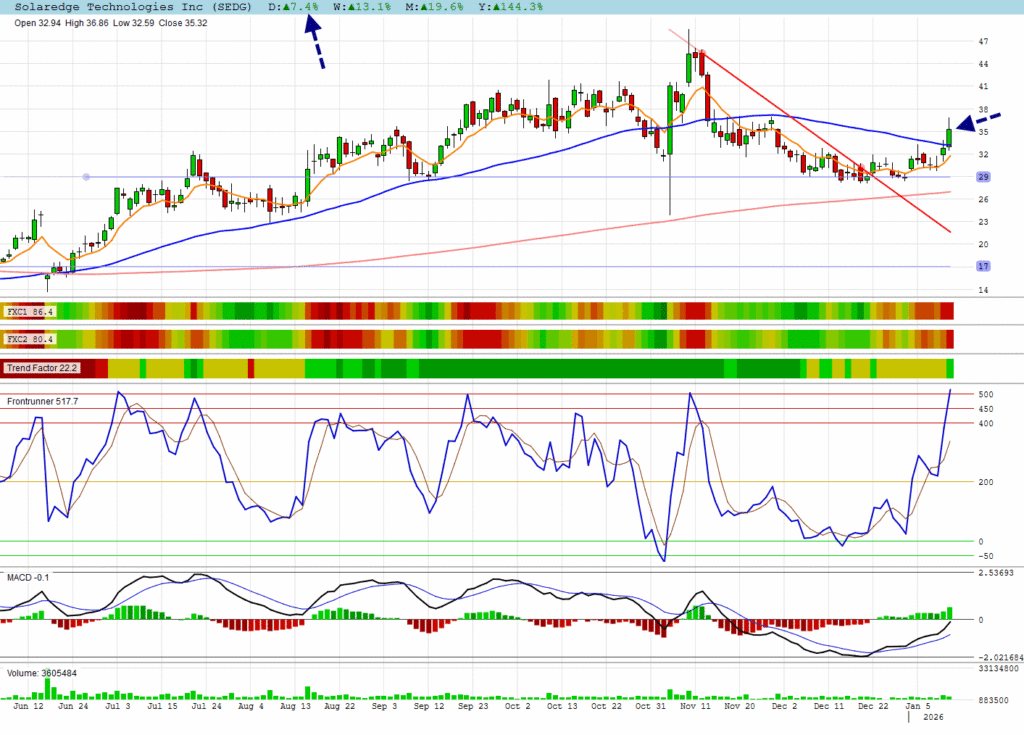 SEDG broke its 50 DMA resistance. Notice the saucer formation.