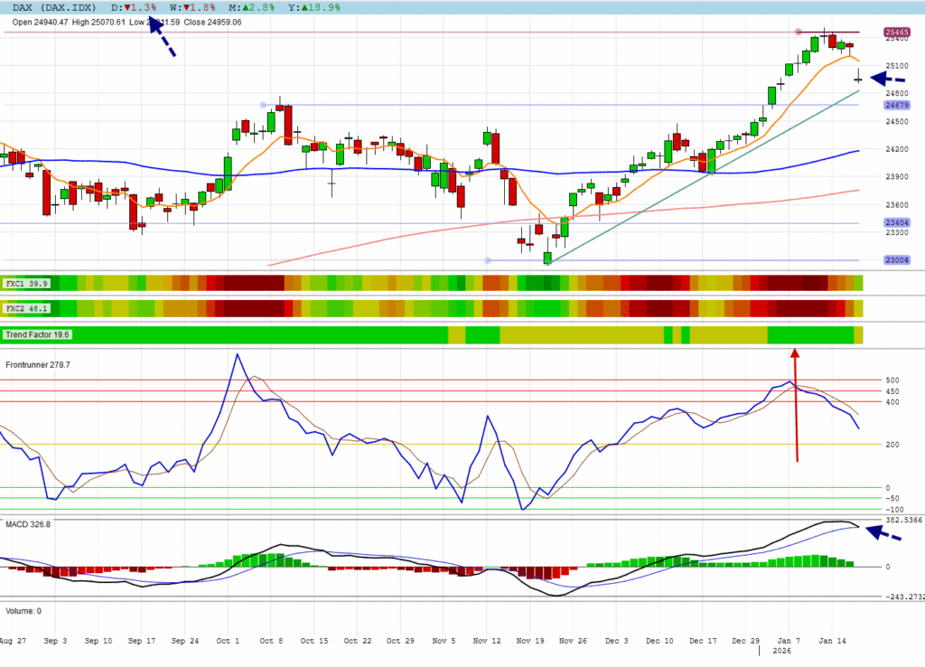 The DAX made a breakaway gap downwards. Notice where Frontrunner broke down.
