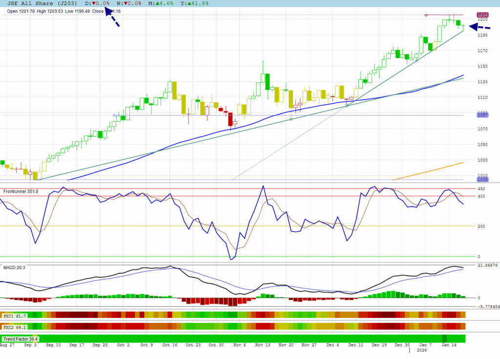 The JSE All Shares closed with an uncertain doji and will most probably follow global markets lower today.