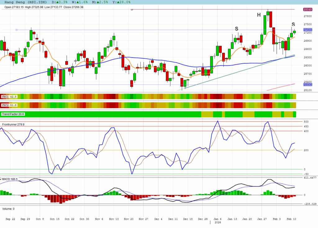 Together with todays negative move the HANG SENG is forming a head and shoulder formation – not good.
