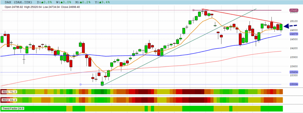 The DAX made an engulfing bull candle, still trending sideways on its EMA8 support.
