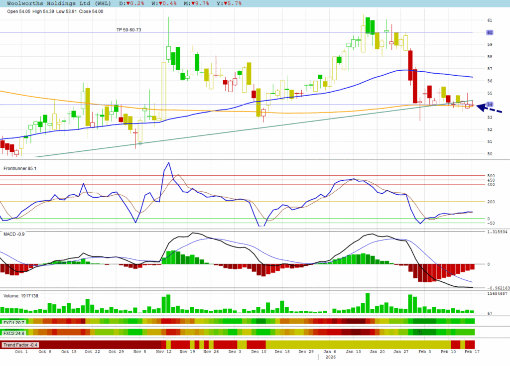 The JSE All Shares was also continuing its abc correction in semi-oversold territory.