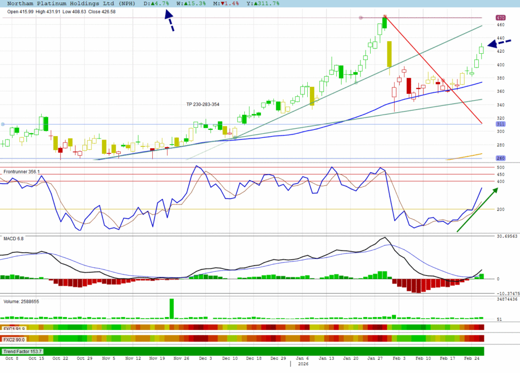 Although the index stalled, platinum shares are still gaining. NPH was the leader with its 4.7% gain.