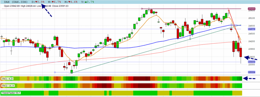 The DAX corrected further with divergence in place in oversold territory.