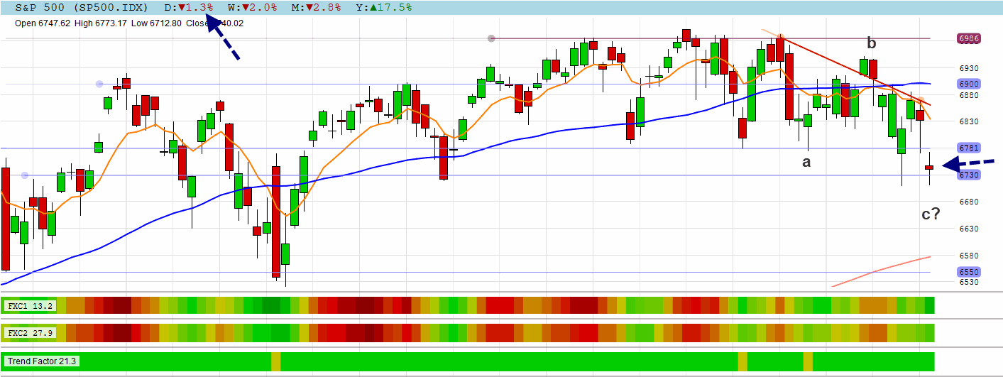 The S&P 500 made another uncertain high wave candle while making an abc correction.