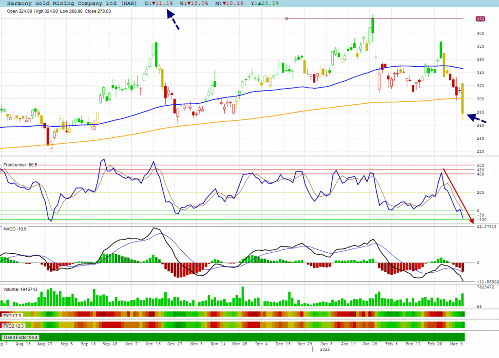 HAR broke its 200 DMA support with a 11.1% drop