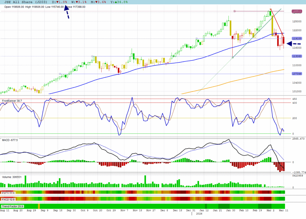 The JSE All Shares made a negative piercing candle. You can see explanations of candles in the educational section.