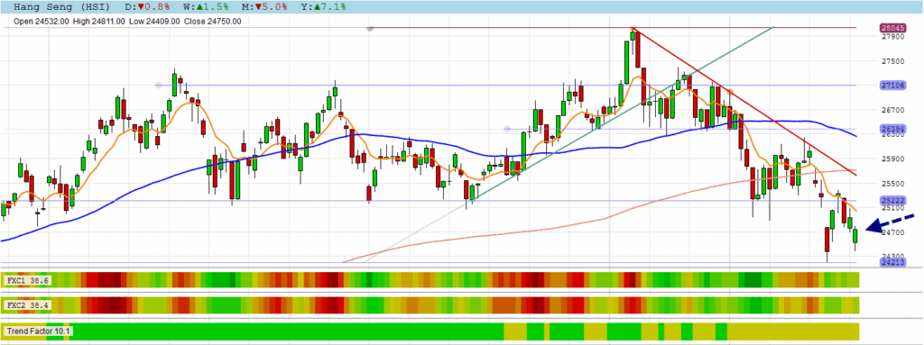 The HANG SENG is stiil in correction mode, but closing near the high of the day.