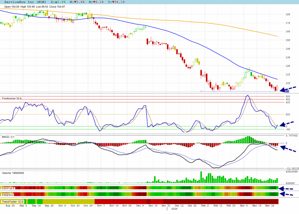 NOW tested bottom support again with a bounce in extreme oversold territory.