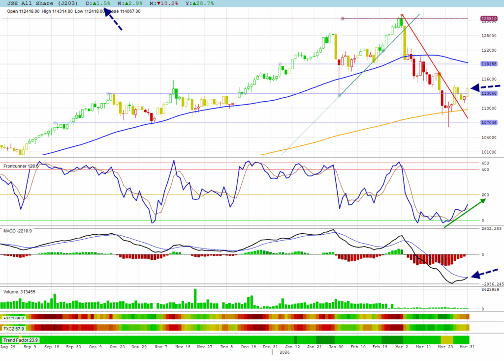 The JSE All Shares is following global markets higher.