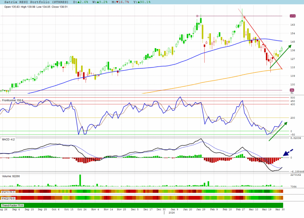 The RESI index has turned positive with a MACD turning green.