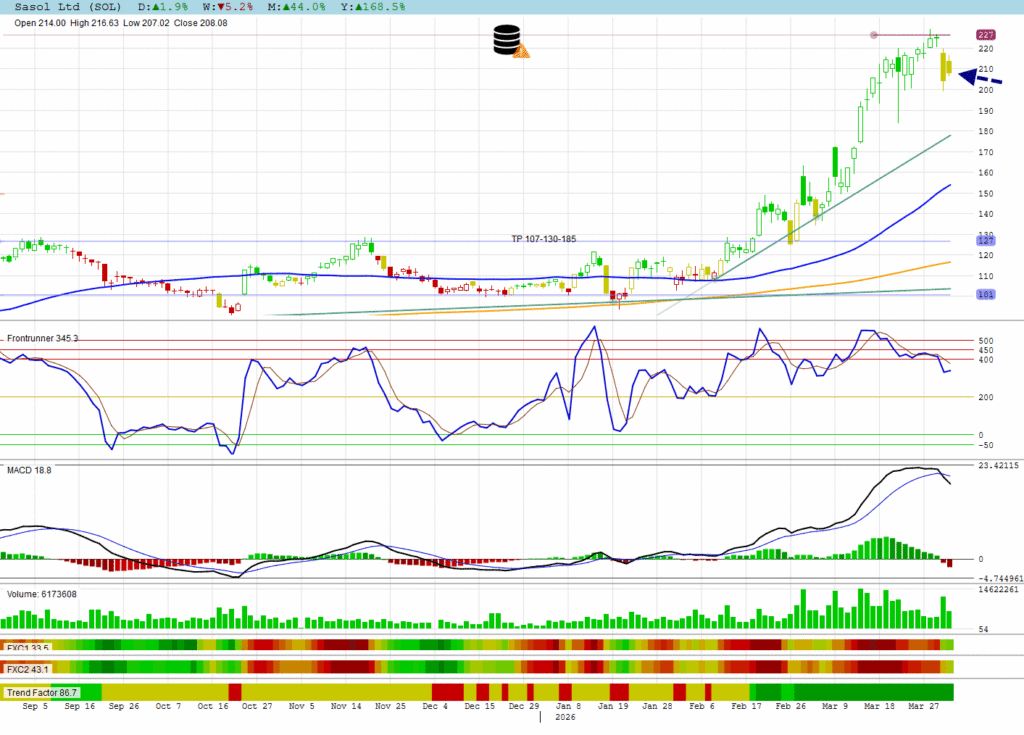 Sasol is following the volatile moves of the oil price while there is no finality about the Iran war.