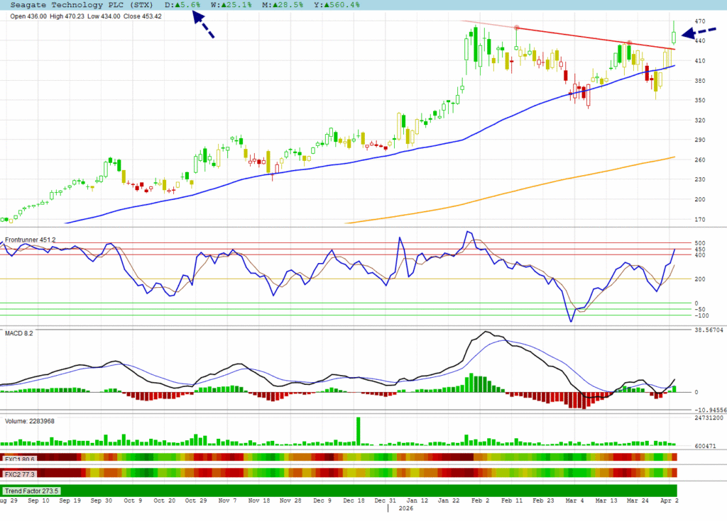 STX made a breakaway gap past resistance.