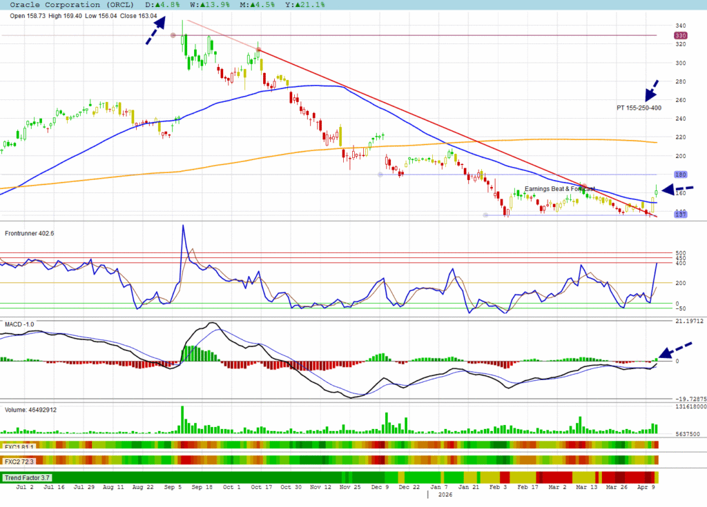 ORCL was the second strongest gainer coming from a low base. Notice the wide range of analysts ranging from $155 to $400 with an average of $250 target price.