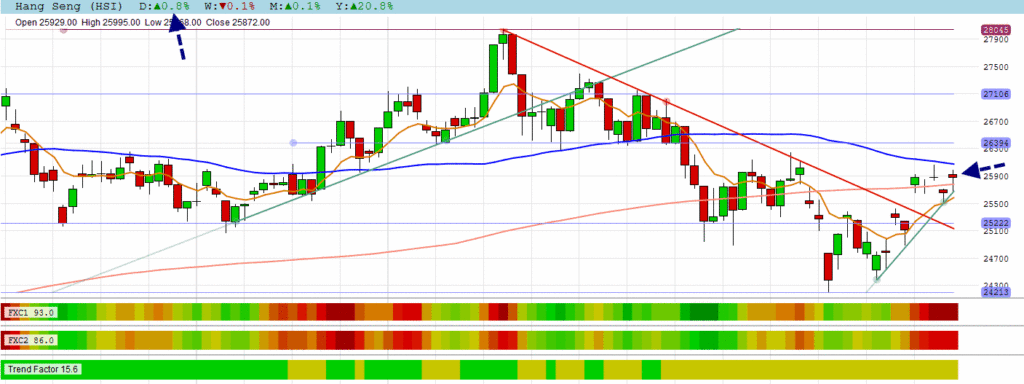 The HANG SENG closed just below its 50 DMA to test it today with a positive move.