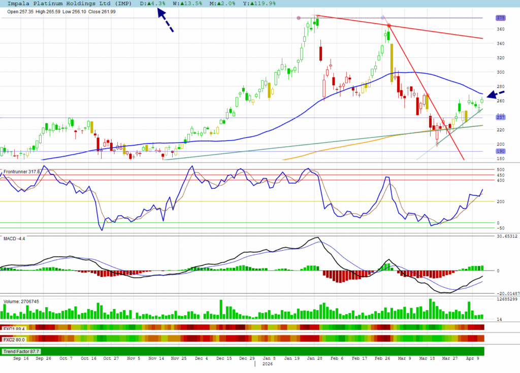 IMP is about to test its 50 DMA resistance, gaining 4.3%.