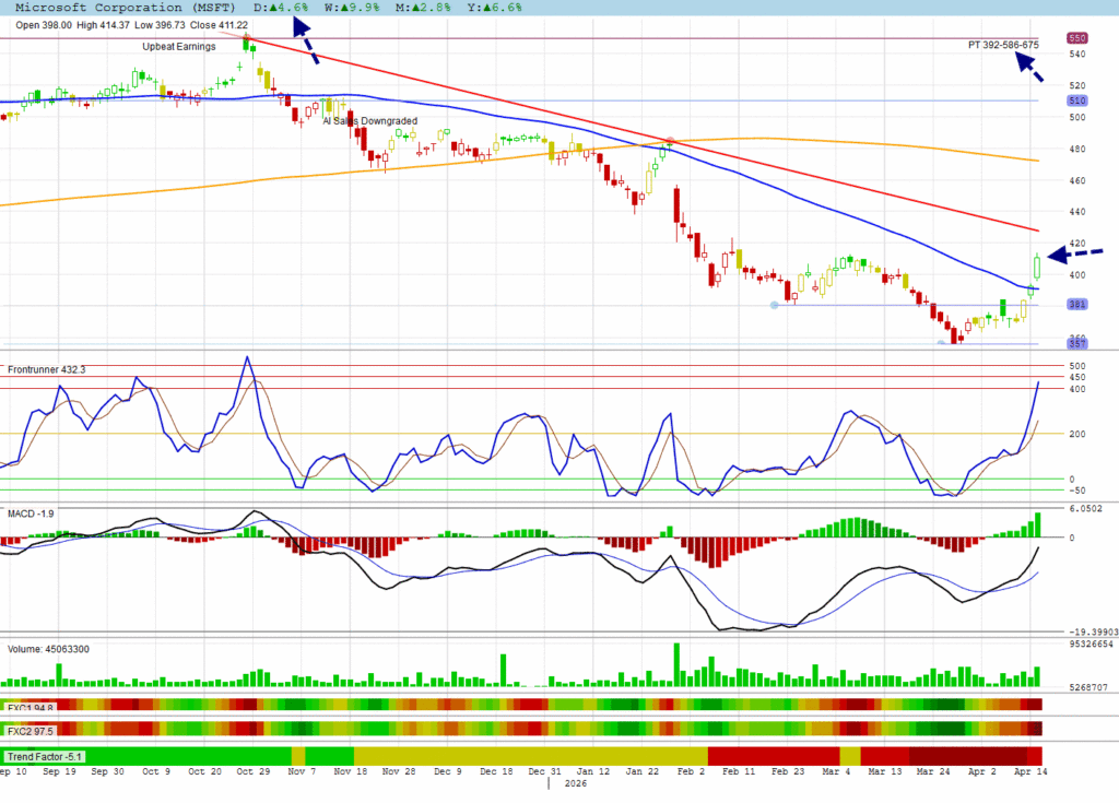 MSFT was one of the strong movers with a 40%-45% upside potential to analysts’ average price prediction.