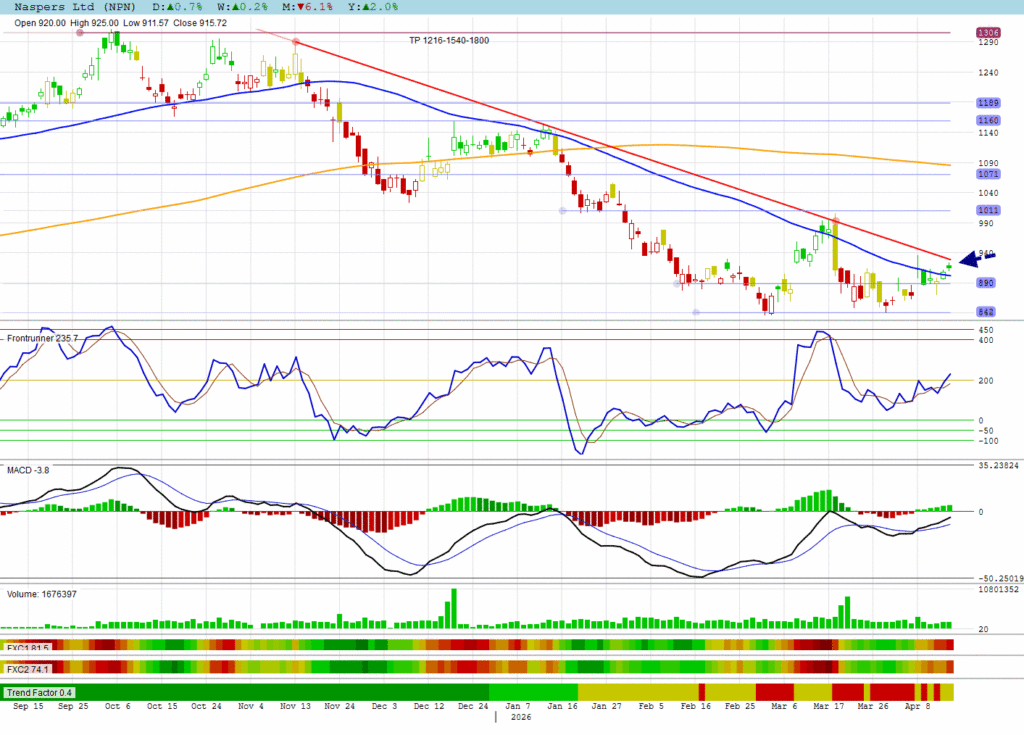 NPN traded above its 50 DMA resistance with the negative trend line its next hurdle.
