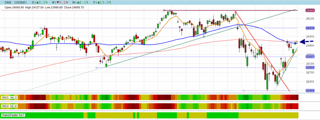 The DAX is still hesitating below its 200 DMA resistance with a doji.