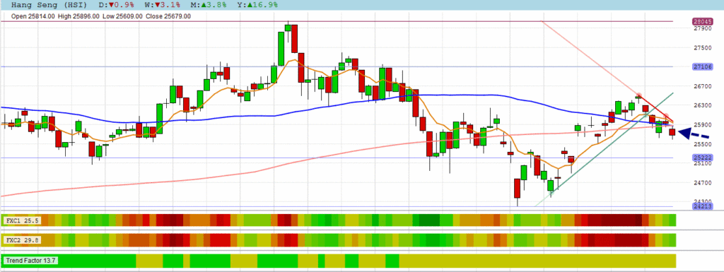 The HANG SENG closed below its 50 & 200 DMA’s supports only to bounce back this morning above them.