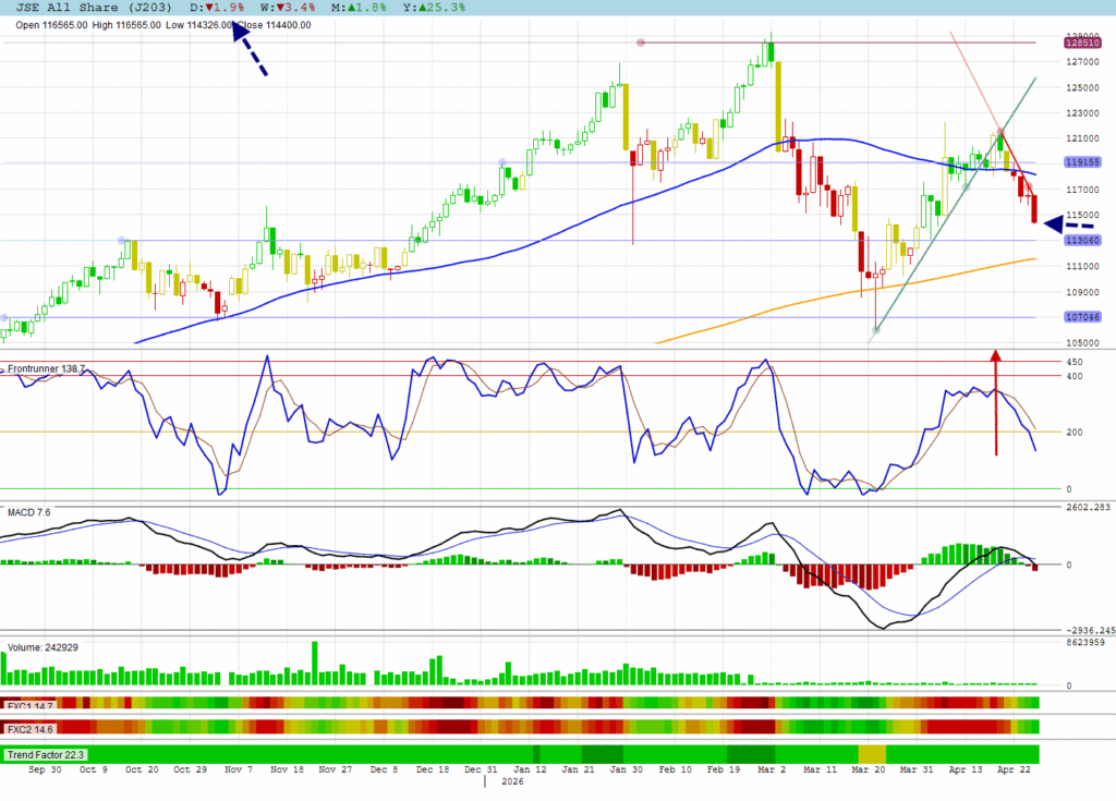 The JSE All Shares is still busy with a strong correction.