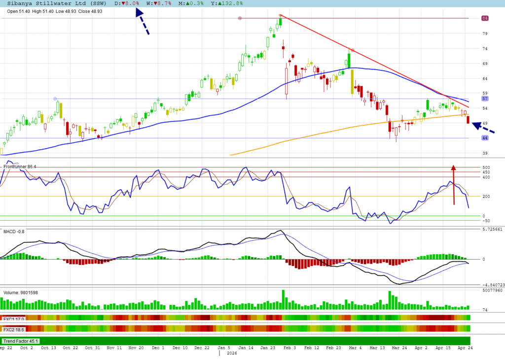 SSW made the largest correction to close below its 200 DMA support.